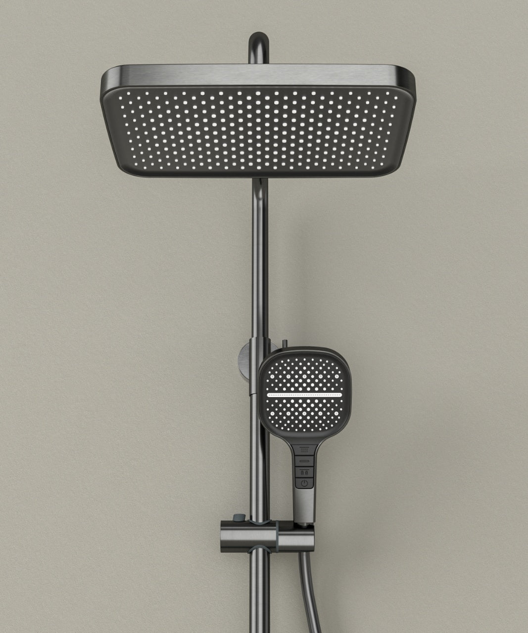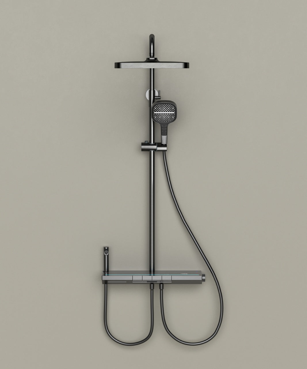 Redefine your shower ritual with the Novus — a cutting-edge smart shower system where modern engineering meets minimalist elegance. With its bold gunmetal finish and intuitive interface, this is not just a fixture — it's the future of wellness.