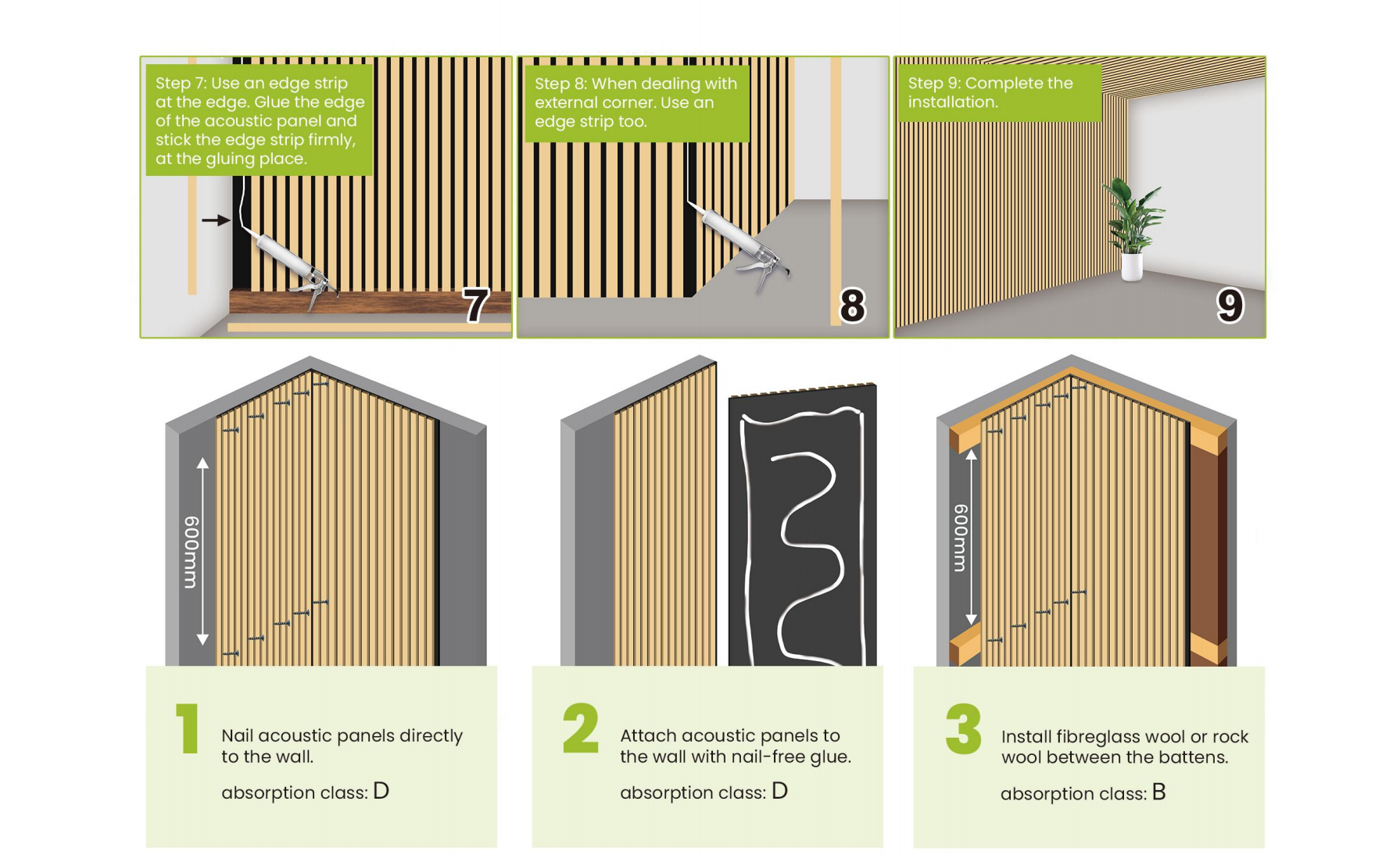 Engineered grooves and high-density MDF core effectively dampen echoes and reduce ambient noise, creating serene and comfortable environments.