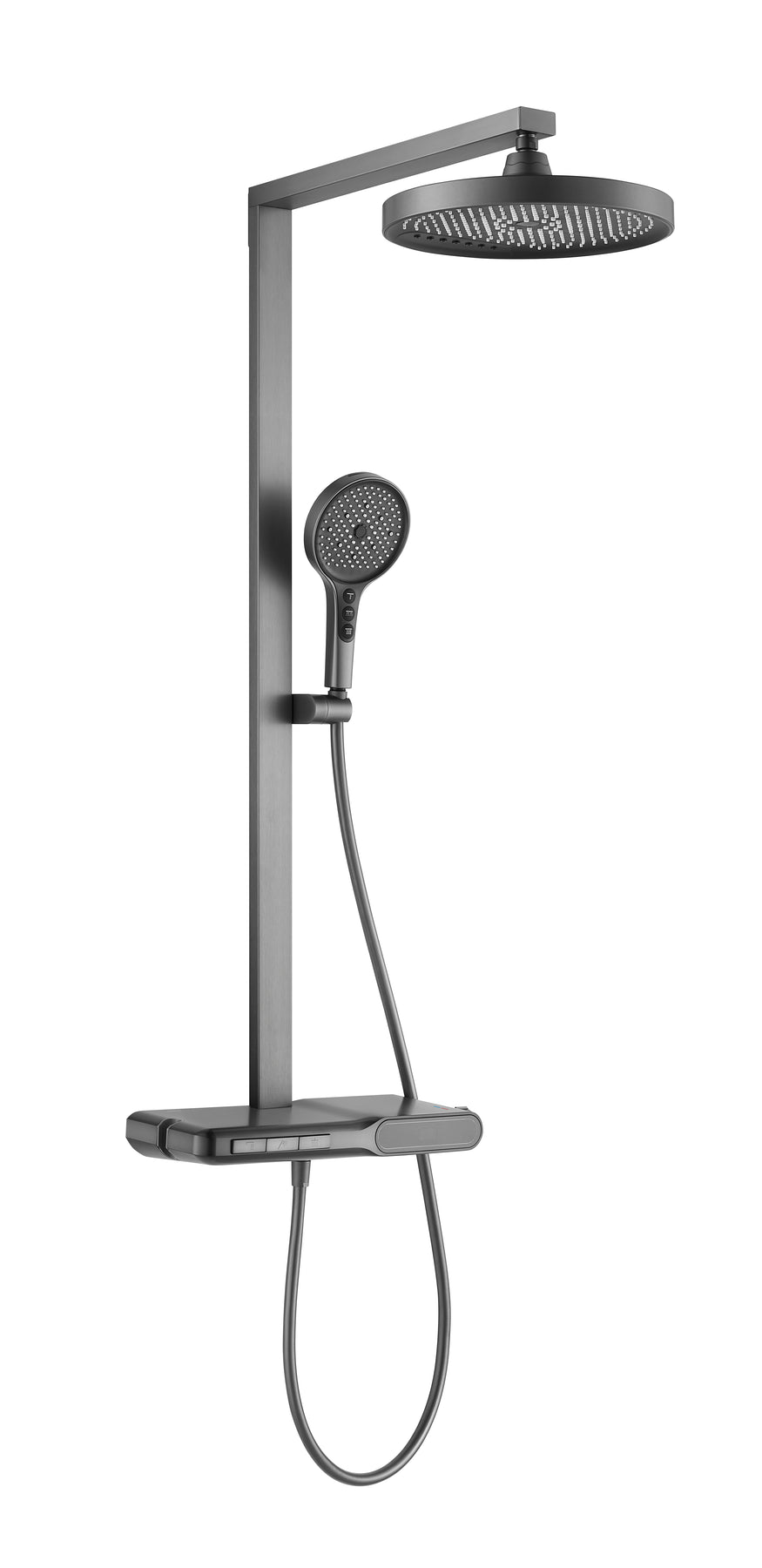 Immerse yourself in a futuristic showering experience with the Luxura,. Finished in a sleek gunmetal tone and crafted with minimalist sophistication, this system redefines luxury with intelligence.