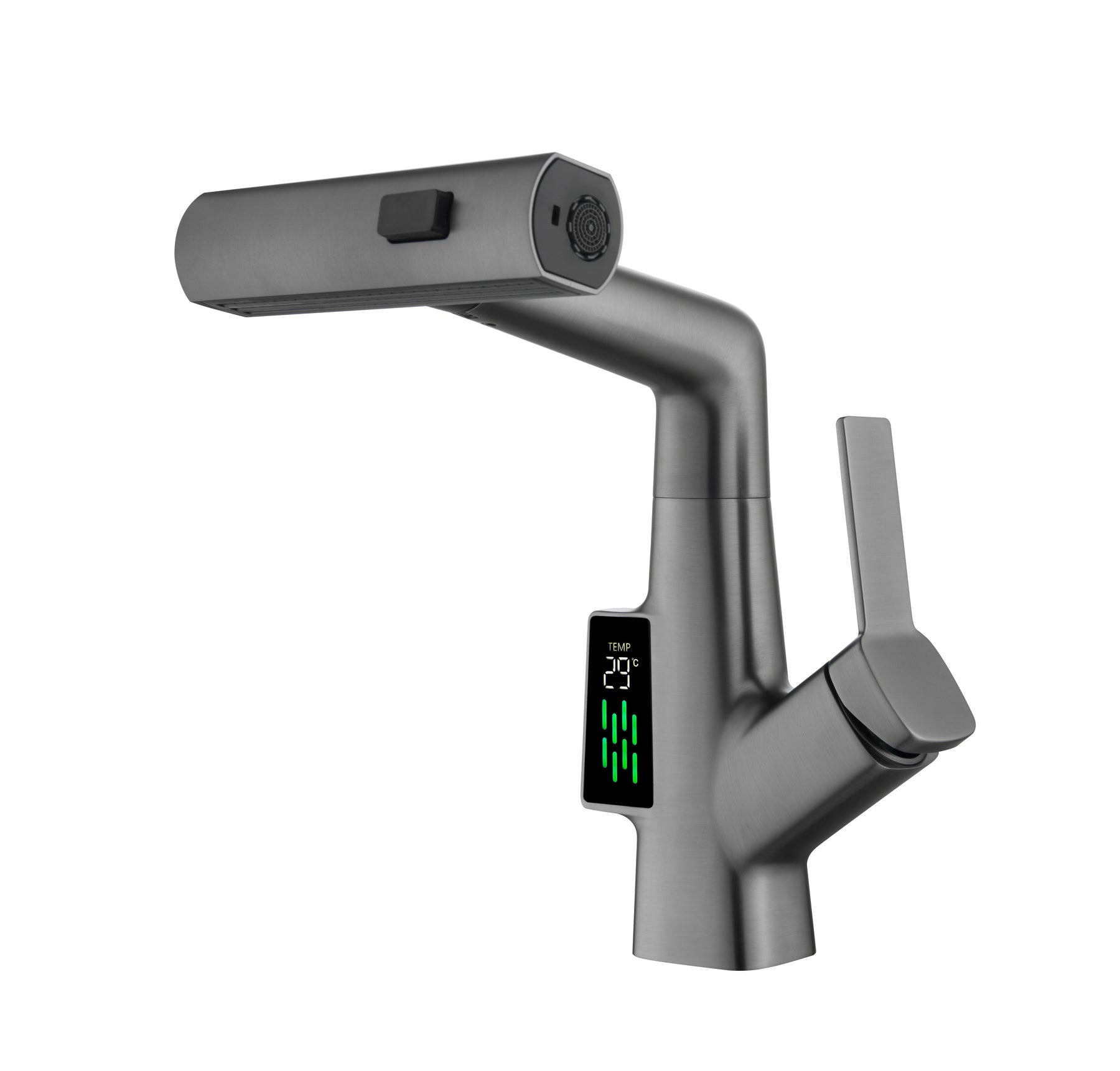 Smart Flow: Helix – Chrome & Gunmetal Digital Basin Faucet with Multifunction Spray